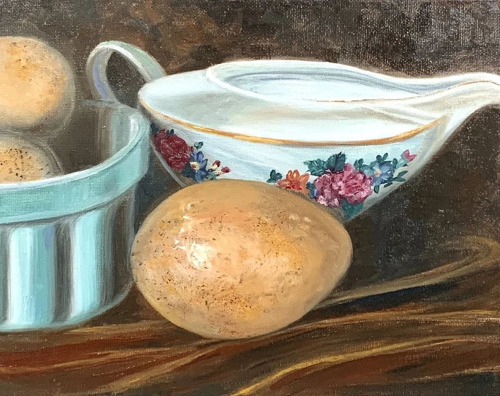 Still life painting is how I learned a lot about shadows and light. The subtle way harsh lines or blurred lines affect the feeling of brush strokes and lend the same feeling to the entire piece.